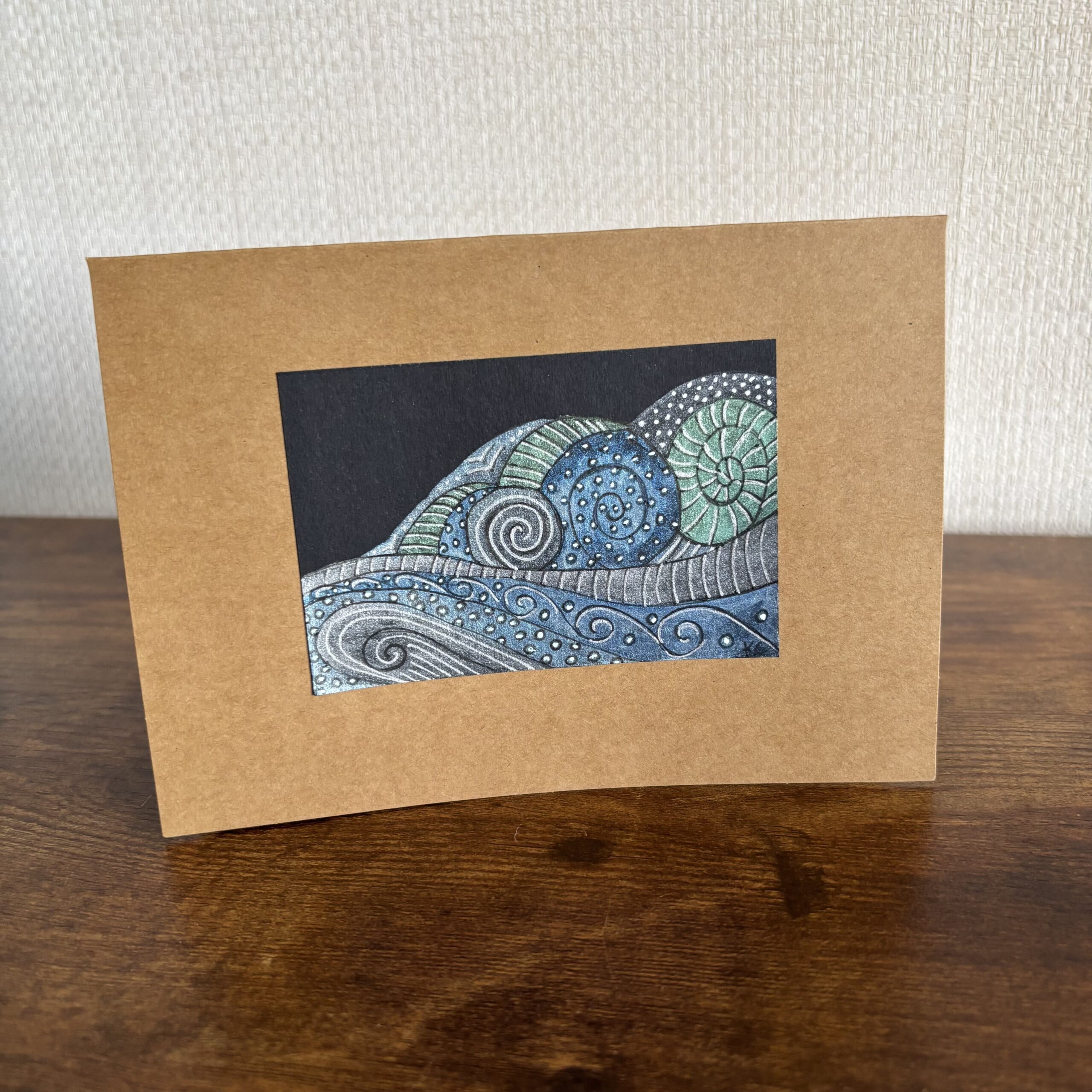 Hand Made Blank Card Waves On Black