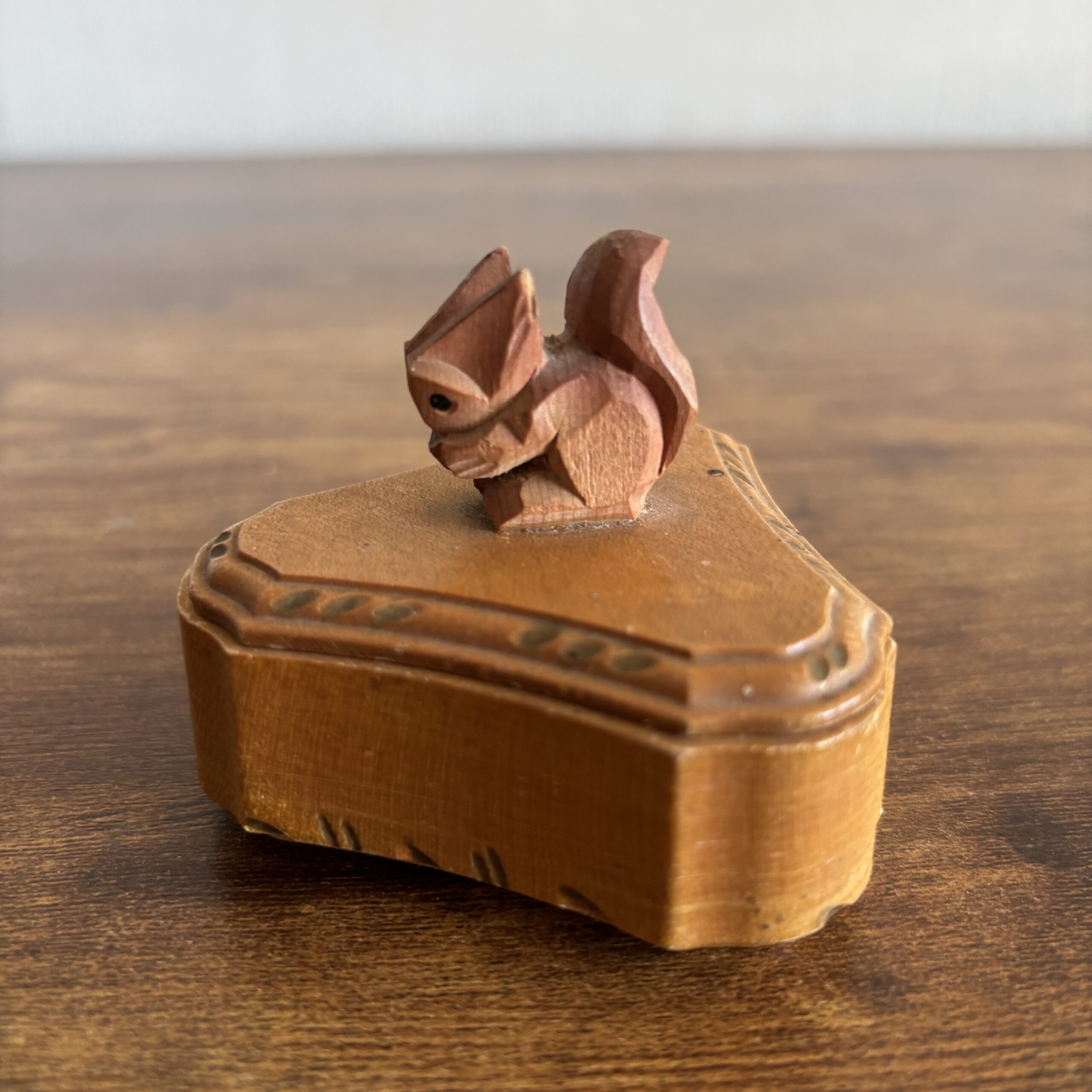 Little Squirrel Box Cute Hand Craved Triangular Shaped Box with a Squirrel on Top Approximately 6 x 6 x 5cm