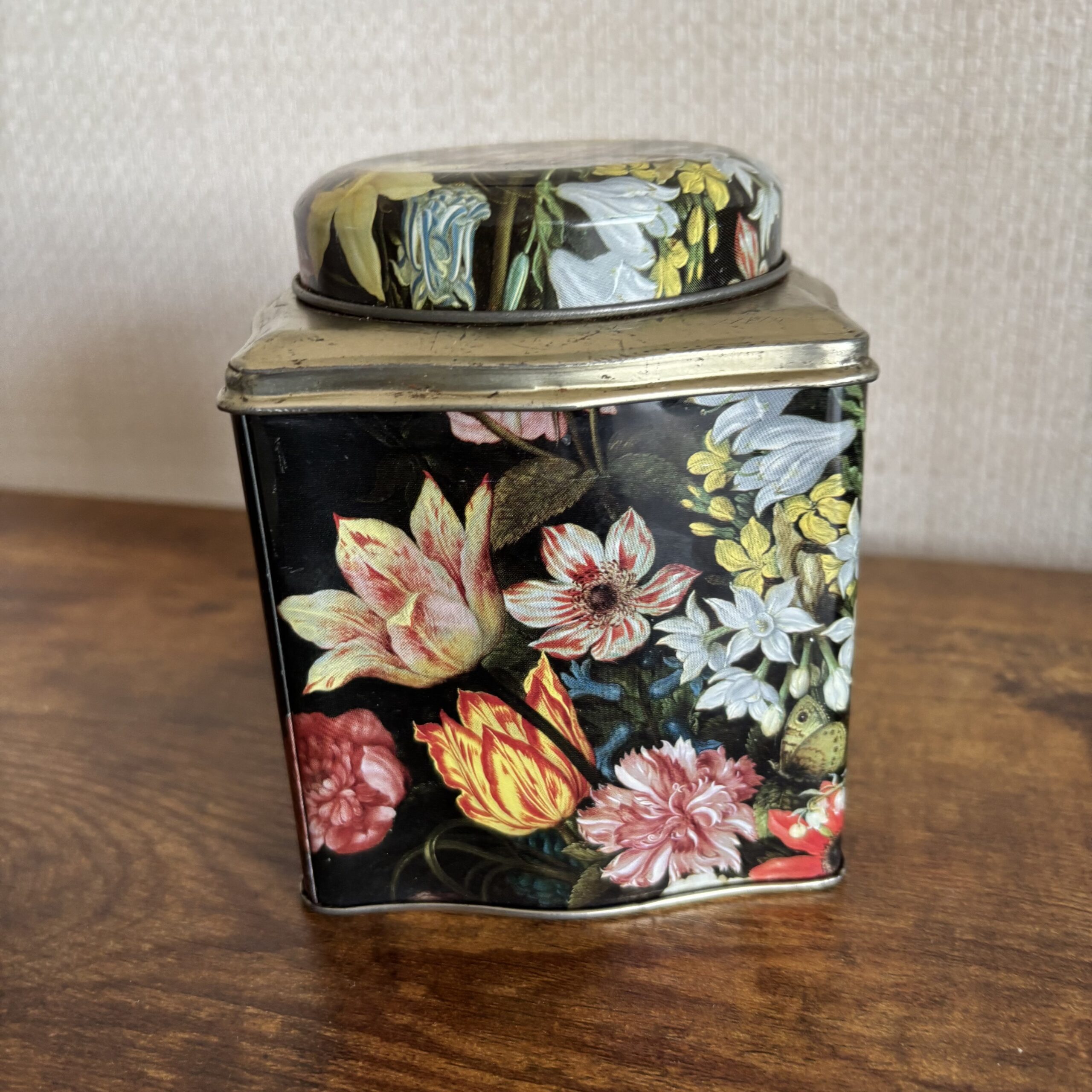 National Gallery Floral Tin Approximately 10 x 10 x11cm Has some scuffs, rust spots – but still a very pretty tin
