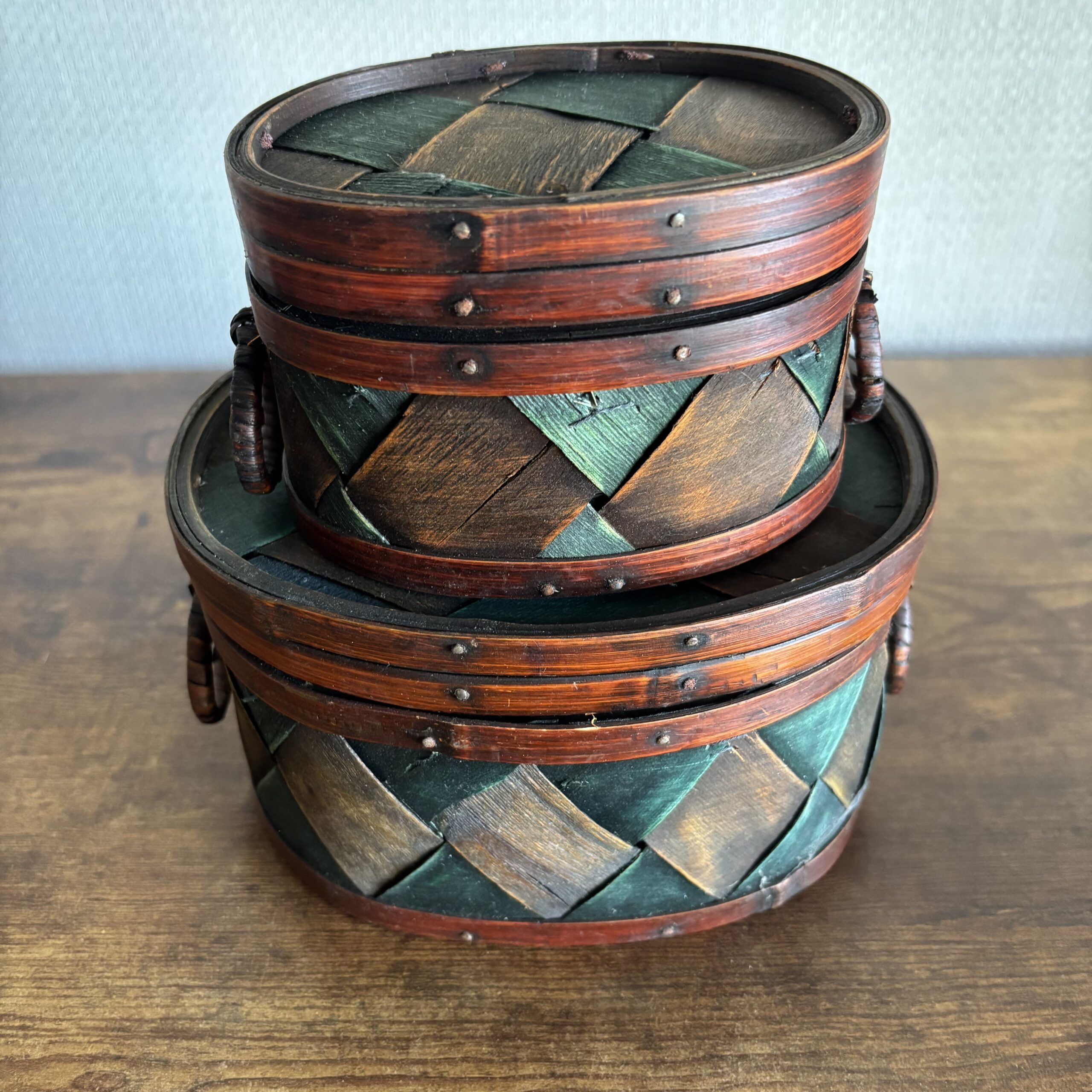 Pair Of Hand Crafted Woven Oval Boxes
