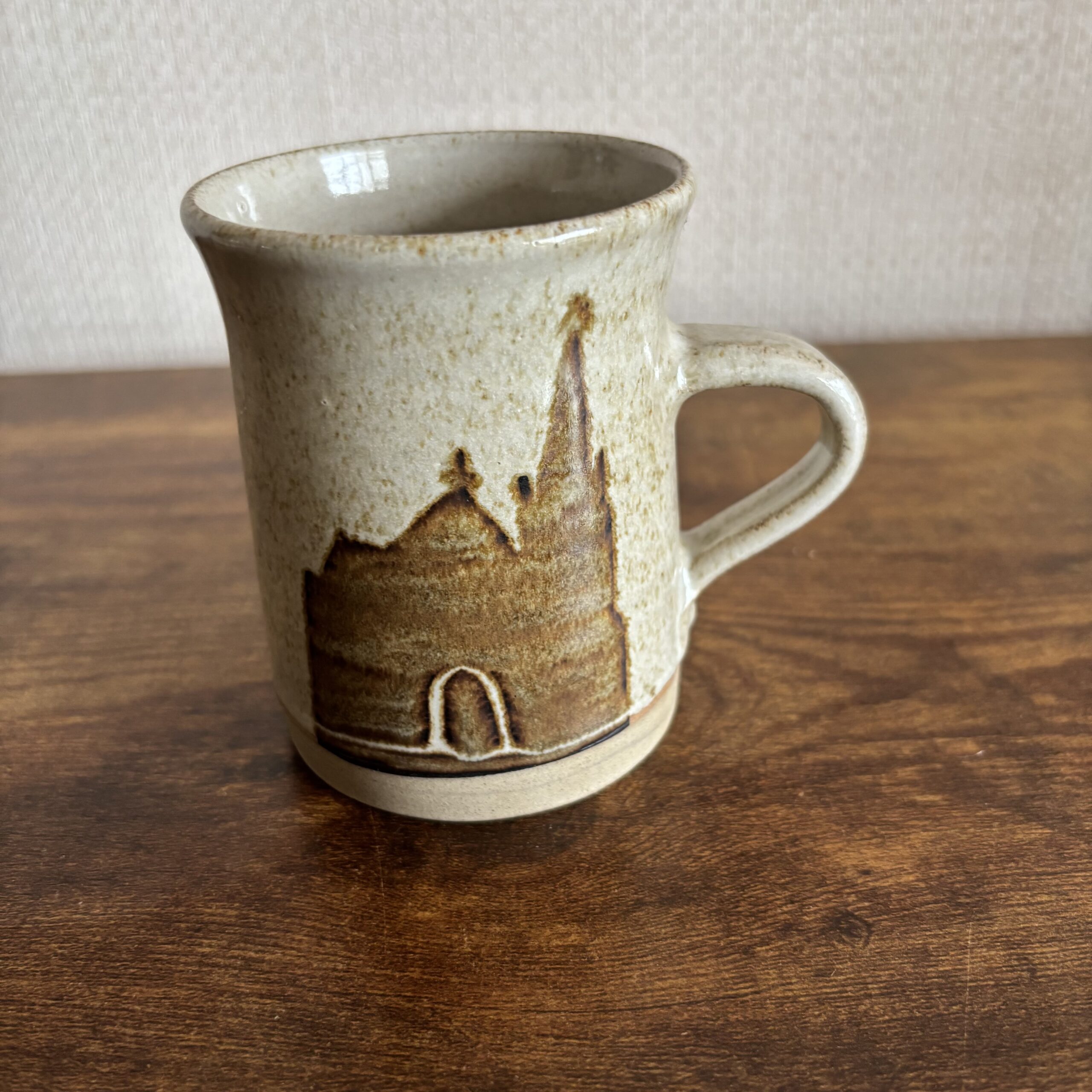 Studio Pottery Mug With Church Hand Crafted Approximately 10cm tall and 7cm in diameter